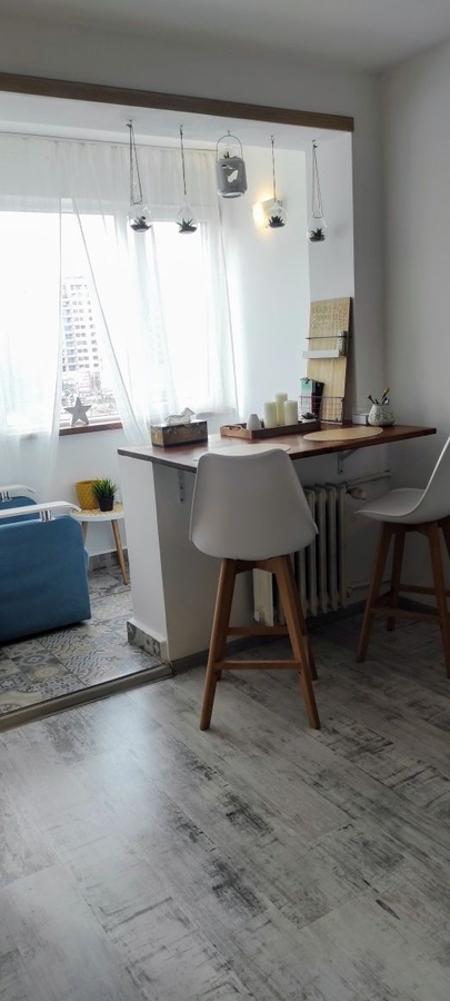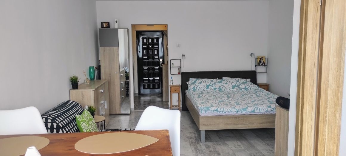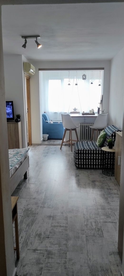 Garsoniera a fost complet renovata inclusiv tevi, instalatia electrica, gresie, faianta, termopan, mobilata modern. Patul este matrimonial doua fotolii de relaxare in balcon si un fotoliu care se transforma in pat petru o persoana. Loc de parcare. Va asteptam la vizionare.