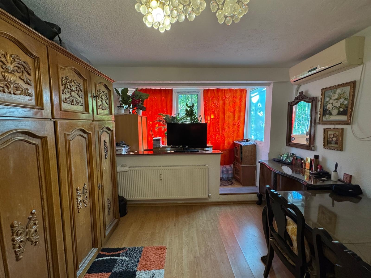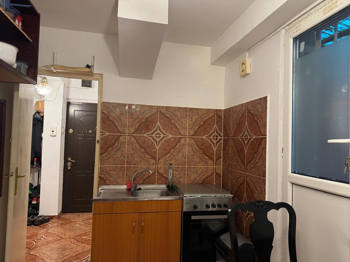 garsoniera Plaza Romania, piata Moghioros, langa metrou, proprietar bloc mixt tip P (4 etaje), parter, balcon, decomandata 40 mp, complet utilata, bucatarie mare.