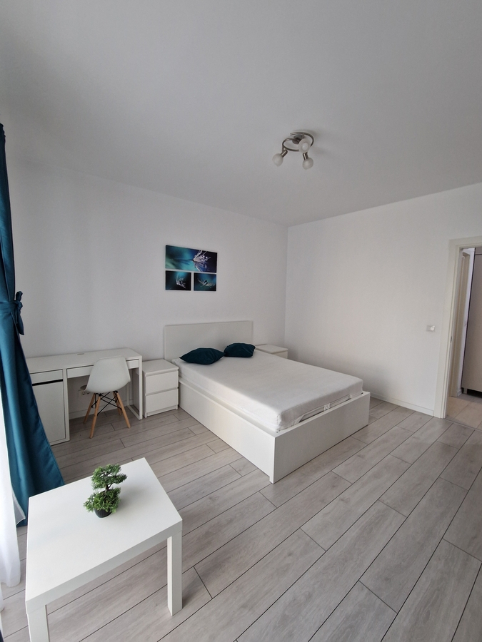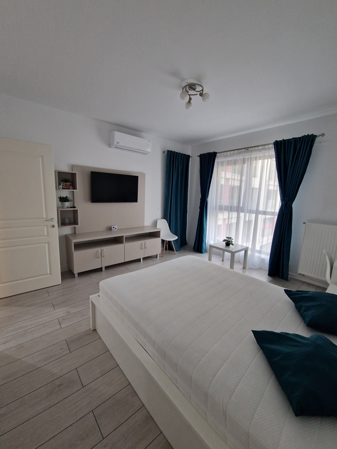 Plaza Rezidence Faza 2, etaj 3/ 11, decomandata, mobilata utilata complet, cuptor microunde, masina de spalat, ac, balcon, vedere spate.