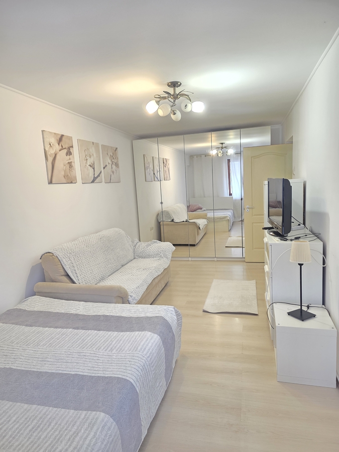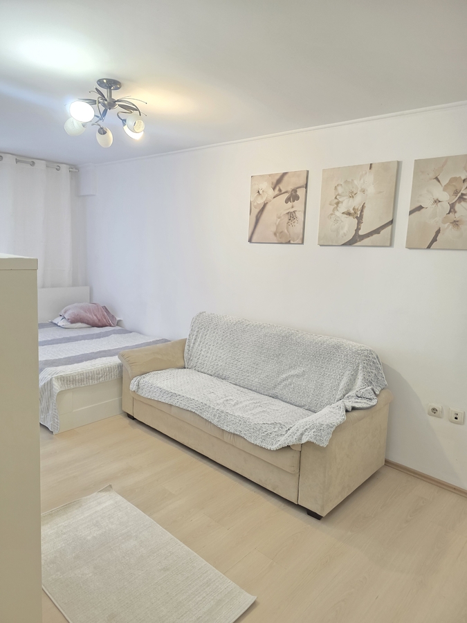 propunem spre inchiriere garsoniera in zona Floreasca, Barbu Vacarescu, langa Baza sportiva Pescariu, 7 minute Mall Promenada. Garsoniera confort 1, 40 mp, et. 3/4, lift, bloc nou 2005, mobilata tineresc, aer conditionat, termopan, gresie, faianta, parchet, centrala proprie,