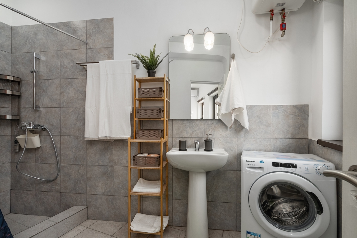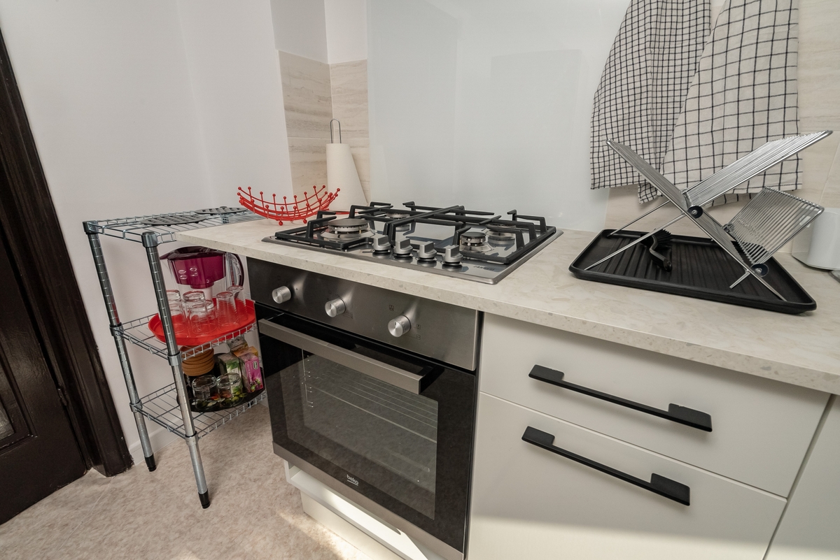 Dupa cum am relatat si mai devreme acest apartament a fost facut pentru regim hotelier. Aveti televizor, Internet de 300 mb/s Orange, aparat de aer conditionat, saltea ortopedica, fier de calcat, masa de calcat, feon. Baia este prevazuta de la masina de spalat rufe pana la orice raft pentru sampon, periuta de dinti...etc. Bucataria care este separata de restul apartamentului, asa se construiau casele in acele vremuri, dotata pana la ultimul pahar ( cuptor microunde, filtru de cafea, fierbator, cuptor, hota, toaster de paine, oale, tigai, farfurii, castroane).