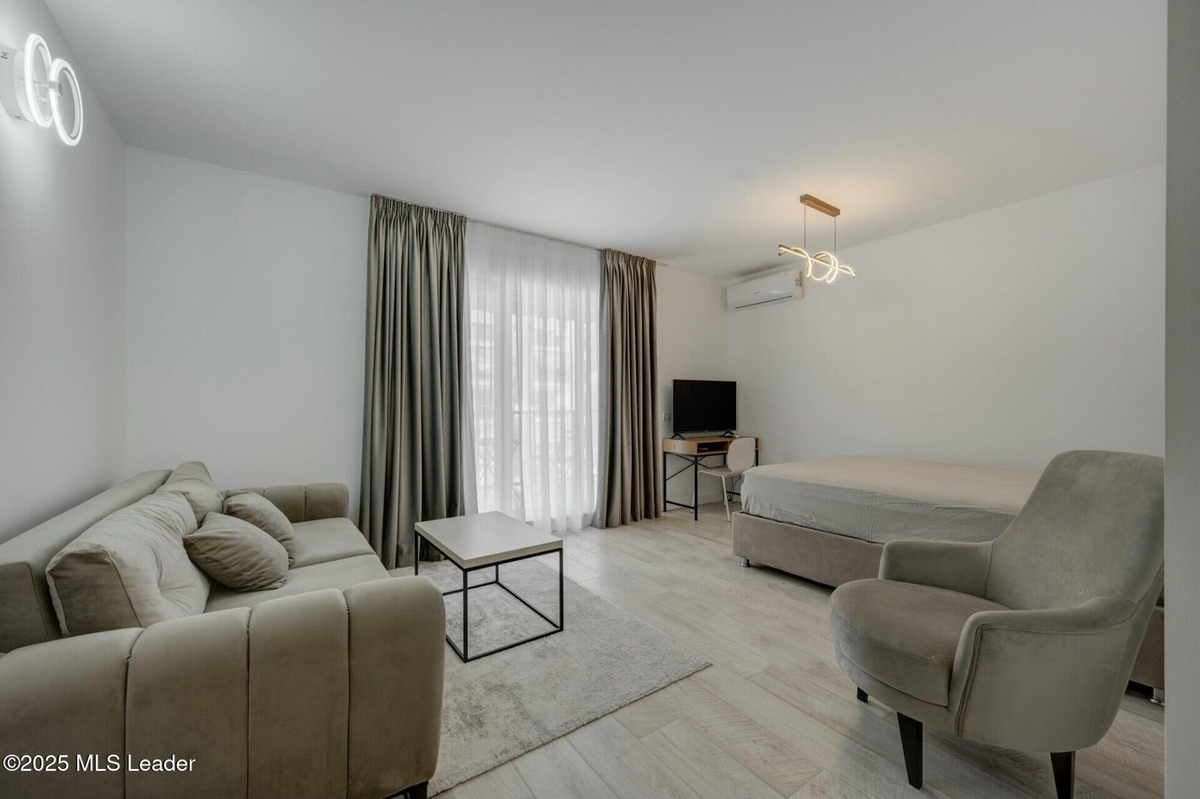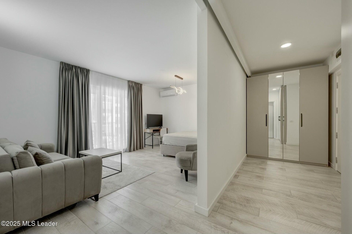 Va propunem spre inchiriere o garsoniera moderna si eleganta, situata la etajul 2 al complexului rezidential Arbo Residence. Cu o suprafata utila de 40,4 mp la care se adauga balconul de 5 mp, locuinta dispune de o bucatarie inchisa, centrala proprie si aer conditionat. Este complet mobilata si utilata cu electrocasnice moderne: frigider, cuptor, hota, plita, masina de spalat vase si masina de spalat rufe.Complexul ofera acces securizat, supraveghere video, piscina, loc de joaca si spatii verzi. Contacteaza-ne pentru detalii si programeaza o vizionare!