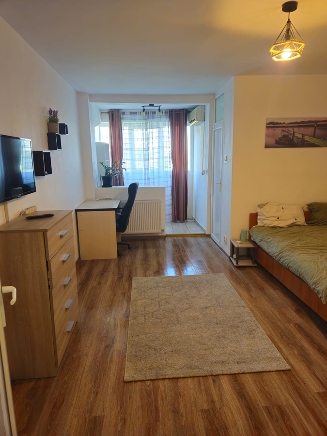Va propun spre inchiriere o garsoniera situata la intersectia Sos. Pantelimon cu str. Baicului la cateva minute de mers pe jos de Mega Mall si de Piata Iancului. Avand suprafata de 32 mp, contine: 1 living dormitor, 1 bucatarie inchisa, 1 baie si 1 logie deschisa. Este intr-un bloc bine izolat (reabilitat, avand costuri mici de intretinere), luminoasa (et. 5 din 10), liniste (vedere pe spate). Statii pentru mijloace de transport in fata blocului (tramvai si autobuz) si la 11 minute de Metrou Iancului. Garsoniera este mobilata si echipata complet (TV, Internet, frigider, aragaz, cuptor cu microunde, masina de spalat rufe, aer conditionat, boiler wireless, apometre si repartitoare wireless etc.)