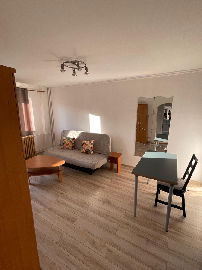 Garsoniera in bloc stradal pe Stefan cel Mare, la 7 minute de statia de metrou, etaj 9/10, decomandata, renovata complet, mobilata si utiala modern.