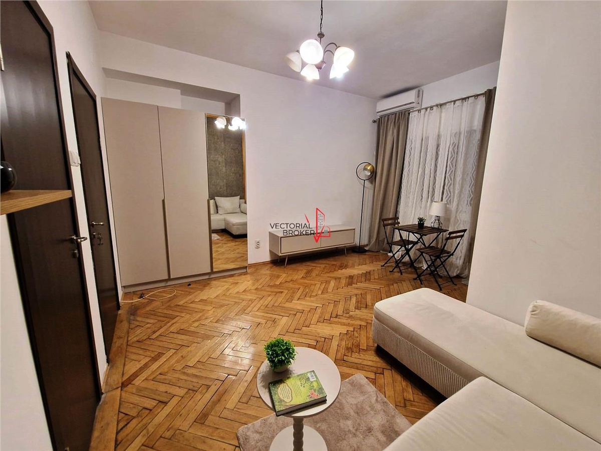 Se inchiriaza garsoniera cocheta si eleganta, situata ultracentral, pe strada Maria Rossetti , intr-un imobil solid, construit in 1947, parter din 7 etaje.