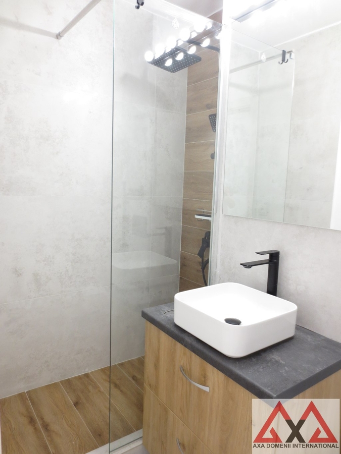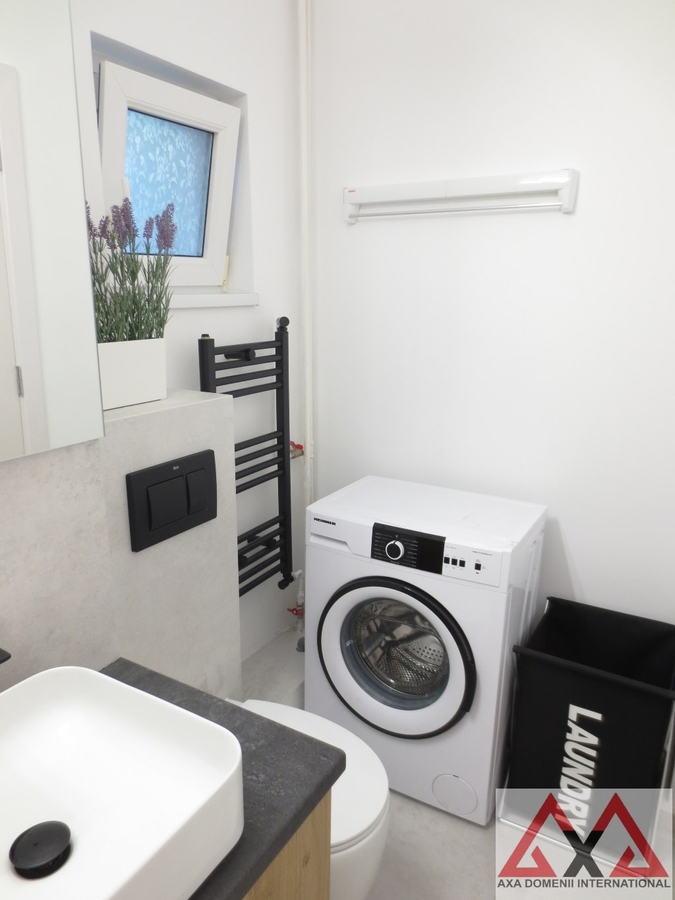 Garsoniera se inchiriaza mobilata (dressing incapator, pat, pantofar, etc.) si utilata (TV TCL, masina de spalat Heinner, plita pe gaz Gorenje, cuptor pe gaz Beko, hota Electrolux, frigider Arctic, aer conditionat Ariston, aspirator).