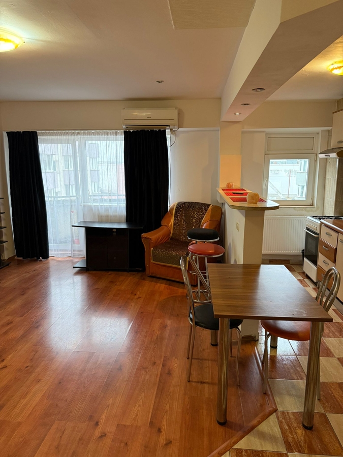 Spatiul e impartit foarte bine in camera de zi cu bucatarie deschisa, baie si balcon.