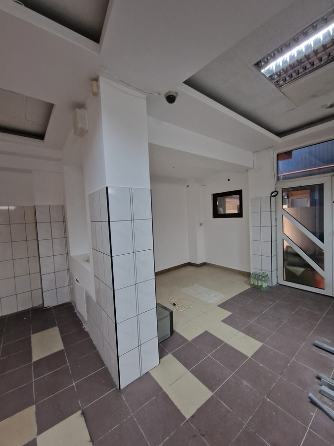 spatiu 100 mp parter plus 45 mp subsol, GATA DE LUCRU! A functionat magazin alimentar 32 ani. Vad bun, chiar in statia 331. Trafic auto intens, trafic pietonal moderat. Proprietar. Imobilul este complet renovat. Vitrina noua. faianta si gresie noi. Centrala termica noua. Lampi LED noi. Tavan casetat nou. Zugravit complet. 380 V. Gaze. Apa de la reteaua publica. Contoare separate pentru apa rece, apa calda, energie electrica. Oblon antiefractie la exterior. Doua intrari, una direct din strada, alta prin curte. Acces separat pentru marfa in subsol. Disponibil imediat. La nivelul actual, daca este potrivit pentru afacerea dvs, nu necesita investitie in amenajare. Contractul il fac pe minim 5 ani.
