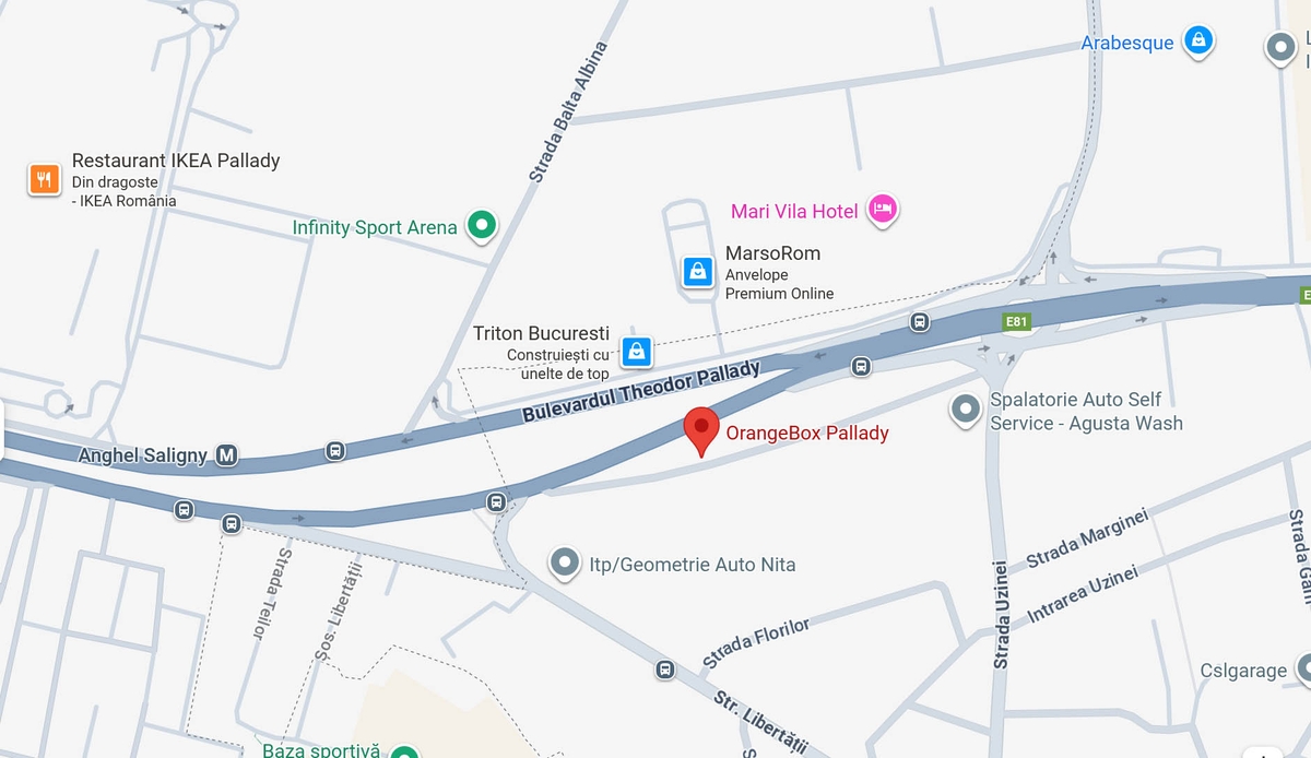 OrangeBox Self Storage este cel mai modern parc de self-storage din zona Pallady, ideal pentru persoane fizice si firme. Locatie excelenta, situata la 3 minute de Ikea Pallady sau statia de metrou Anghel Saligny