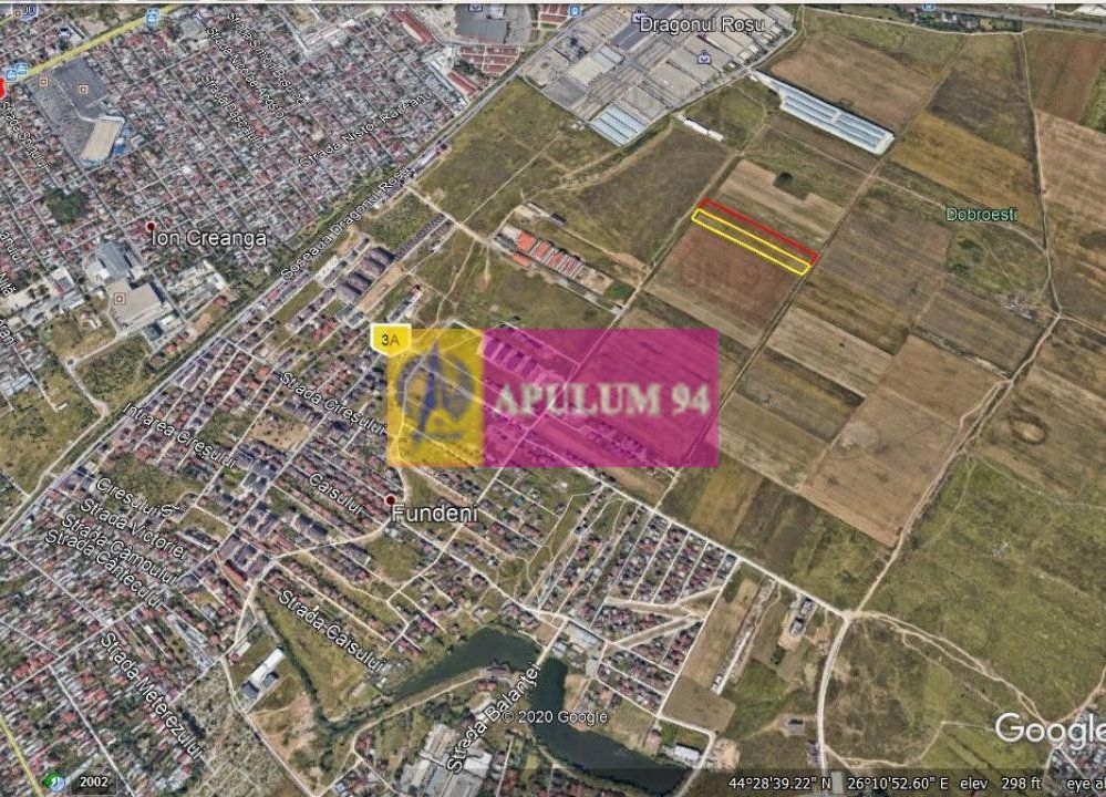Inchiriere teren Fundeni Dobroesti, 7500mp cu deschidere de 23m. Terenul este dreptunghiular cu doua deschideri, la strada Balantei si la Stejarului.