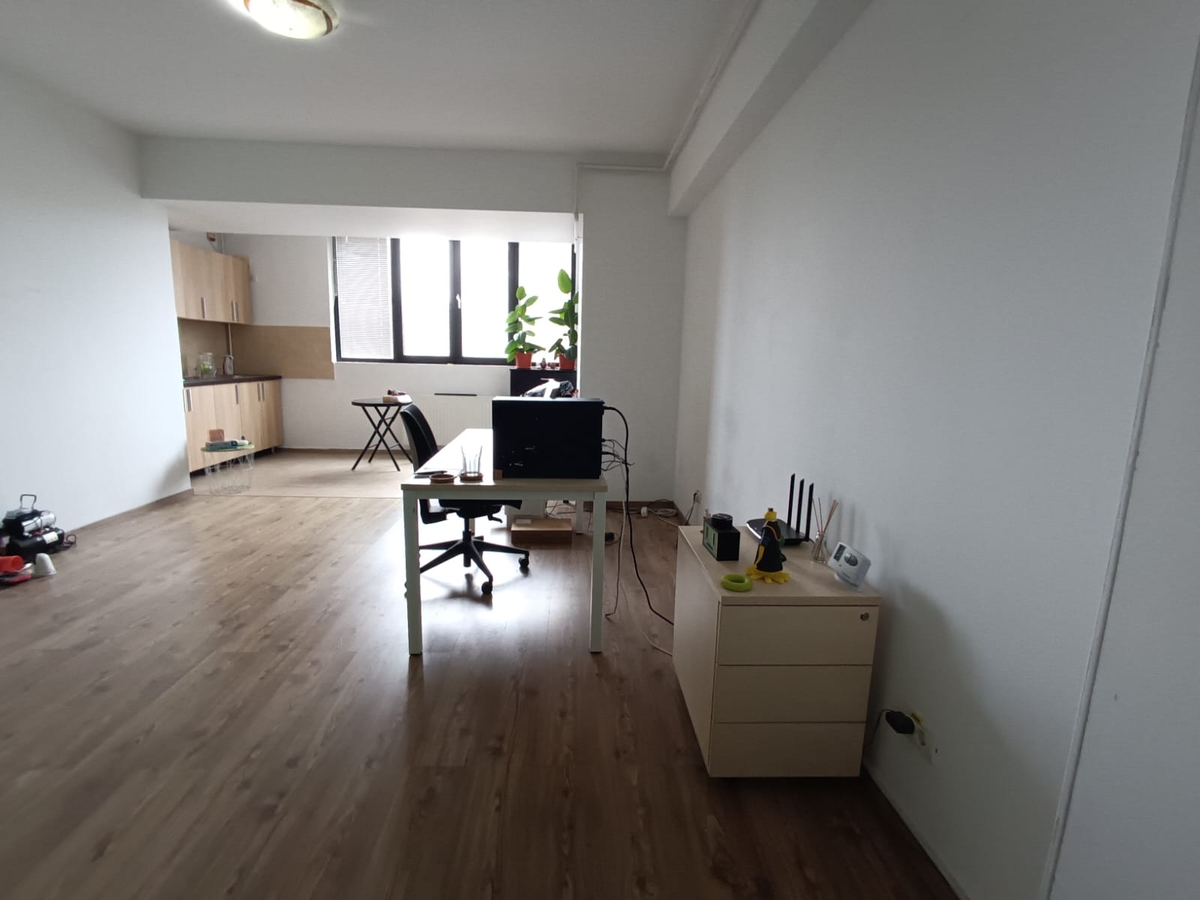 Oferim spre inchiriere cu destinatia birou, apartament 2 camere, etajul 2/8, semidecomandat, bucatarie mobilata, centrala termica, aer conditionat, nemobilat, neutilat. Mentionam faptul ca apartamentul apartine unei societati, tot etajul este inchiriat la firme, se ofera factura fiscala