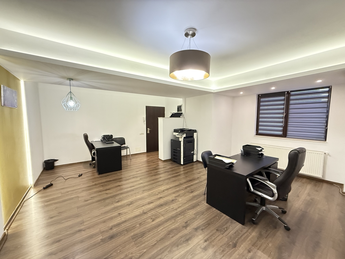Open space generos + 1 birou separat + Bucatarie spatioasa, complet separata + Grup sanitar separat + Spatiu de depozitare;