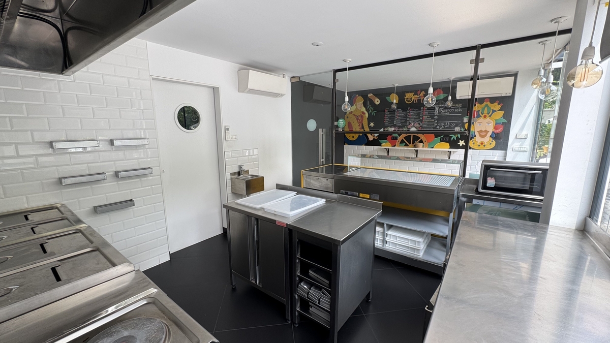 Spatiul este amenajat, compartimentat, utilat si echipat pentru o gama larga de activitati tip fastfood.