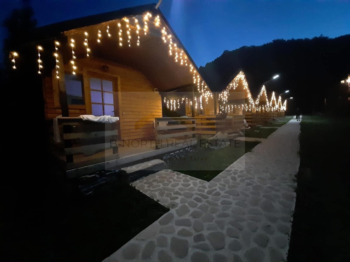10 casute individuale din lemn, fiecare cu baie proprie si terasa privata