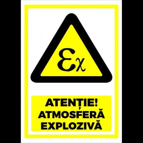 Vand Indicator atentie atmosfera exploziva la un pret foarte avantajos! Indicator atentie atmosfera exploziva Va putem oferi alte dimensiuni, materiale sau modele separat la cerere. Noua modalitate de print UV pentru semne si indicatoare este de ultima tehnologie UV . Aceasta tehnica este mult mai performanta decat o tehnica obisnuita de printare digitala. Atat calitatea sa net superioara, cat si versarilitatea sa pe imprimarea diferitelor produse este foarte mare si larga Un print UV consta intr-o tehnica de printare prin care cerneala se aplica pe un material sau obiect de imprimat, care este apoi uscata instant de catre un emitator de raze ultraviolet. Pentru a acoperi toata suprafata printata sunt utilizate numeroase tipuri de compusi, incluzand carbonatul de calciu si caolinitul. Aceasta imprimare UV este o maniera de imprimare digitala cu o tehnica noua care usuca cerneala. Se poate folosi pe o gama larga de materiale, astfel incat se poate imprima pe plastic, metal, hartie, carton, placi ceramice, sticla, lemn si multe altele. ? Autocolant industrial UV pentru semne si indicatoare ? Folie adeziva din PVC polimeric, utilizata in special la exterior, pentru decorarea suprafetelor drepte, etc; ? Grosimea este de 90 microni. ? Adezivul este pe baza de poliacrilat, permanent. ? pentru interior si exterior. ? Suprafata foliei este integral colorata, lucioasa (59 de culori) sau mata (56 culori). ? Placi forex industrial UV industrial pentru semne si indicatoare cu suprafata tare, lucioasa, bun izolator termic si fonic, rezistenta mare la agenti naturali si corozivi, flamabilitate redusa. ? Gama de culori disponibile in permanenta in stoc: rosu, albastru inchis, albastru deschis, negru, galben inchis, galben deschis, gri, verde. ? Placile din PVC compact industrial au suprafata dura si lucioasa. Se recomanda folosirea acestor placi atat pentru aplicatii indoor, cat si pentru aplicatii outdoor, datorita proprietatii materialului de a fi un bun izolator termic si fonic. Placile din PVC compact sunt vacuumabile si termoformabile. ? Grosimi disponibile in permanenta in stoc: 2mm; 3mm. ? Placi bond industrial uv pentru semne si indicatoare ? placi sandwich aluminiu cunoscute si sub denumirile comerciale de alucobond, alubond si dibond. ? Utilizate pentru placari fatade, placari interioare, placari exterioare. ? Este un material cu doua fete din aluminiu si un miez din polietilena ce inlocuieste cu succes tabla, lambriurile sau placajele plastice. ? Miezul este fixat prin aderenta pe fetele din tabla, pe toata suprafata. ? Tabla este vopsita in minim doua straturi, peste care se aplica un strat de lac protector compatibil cu vopseaua. ? Panourile pot avea o singura fata decor sau ambele fete colorate ? ? Placile sunt foarte usor de prelucrat, putand fi personalizate prin laminare, serigrafiere, tipar digital si lacuire, fiind usor de intretinut si avand o durata sporita de viata.. www.prevenirea.ro - 0724 306 714. Va rugam sa selectati dimensiunea potrivita pentru dvs.