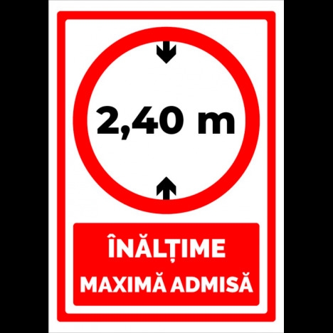 Vand Indicator de securitate pentru inaltime maxima admisa 2,40m la un pret foarte avantajos! Indicator de securitate pentru inaltime maxima admisa 2,40m Va putem oferi alte dimensiuni, materiale sau modele separat la cerere. Noua modalitate de print UV pentru semne si indicatoare este de ultima tehnologie UV . Aceasta tehnica este mult mai performanta decat o tehnica obisnuita de printare digitala. Atat calitatea sa net superioara, cat si versarilitatea sa pe imprimarea diferitelor produse este foarte mare si larga Un print UV consta intr-o tehnica de printare prin care cerneala se aplica pe un material sau obiect de imprimat, care este apoi uscata instant de catre un emitator de raze ultraviolet. Pentru a acoperi toata suprafata printata sunt utilizate numeroase tipuri de compusi, incluzand carbonatul de calciu si caolinitul. Aceasta imprimare UV este o maniera de imprimare digitala cu o tehnica noua care usuca cerneala. Se poate folosi pe o gama larga de materiale, astfel incat se poate imprima pe plastic, metal, hartie, carton, placi ceramice, sticla, lemn si multe altele. ? Autocolant industrial UV pentru semne si indicatoare ? Folie adeziva din PVC polimeric, utilizata in special la exterior, pentru decorarea suprafetelor drepte, etc; ? Grosimea este de 90 microni. ? Adezivul este pe baza de poliacrilat, permanent. ? pentru interior si exterior. ? Suprafata foliei este integral colorata, lucioasa (59 de culori) sau mata (56 culori). ? Placi forex industrial UV industrial pentru semne si indicatoare cu suprafata tare, lucioasa, bun izolator termic si fonic, rezistenta mare la agenti naturali si corozivi, flamabilitate redusa. ? Gama de culori disponibile in permanenta in stoc: rosu, albastru inchis, albastru deschis, negru, galben inchis, galben deschis, gri, verde. ? Placile din PVC compact industrial au suprafata dura si lucioasa. Se recomanda folosirea acestor placi atat pentru aplicatii indoor, cat si pentru aplicatii outdoor, datorita proprietatii materialului de a fi un bun izolator termic si fonic. Placile din PVC compact sunt vacuumabile si termoformabile. ? Grosimi disponibile in permanenta in stoc: 2mm; 3mm. ? Placi bond industrial uv pentru semne si indicatoare ? placi sandwich aluminiu cunoscute si sub denumirile comerciale de alucobond, alubond si dibond. ? Utilizate pentru placari fatade, placari interioare, placari exterioare. ? Este un material cu doua fete din aluminiu si un miez din polietilena ce inlocuieste cu succes tabla, lambriurile sau placajele plastice. ? Miezul este fixat prin aderenta pe fetele din tabla, pe toata suprafata. ? Tabla este vopsita in minim doua straturi, peste care se aplica un strat de lac protector compatibil cu vopseaua. ? Panourile pot avea o singura fata decor sau ambele fete colorate ? ? Placile sunt foarte usor de prelucrat, putand fi personalizate prin laminare, serigrafiere, tipar digital si lacuire, fiind usor de intretinut si avand o durata sporita de viata.. www.prevenirea.ro - 0724 306 714. Va rugam sa selectati dimensiunea potrivita pentru dvs.