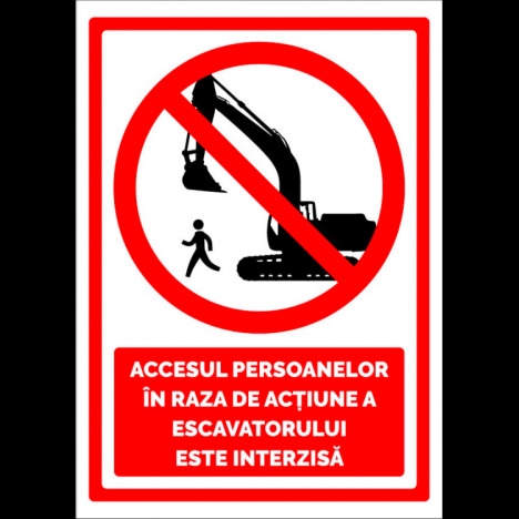 Indicator pentru accesul persoanelor in raza de actiune a excavatorului este interzis