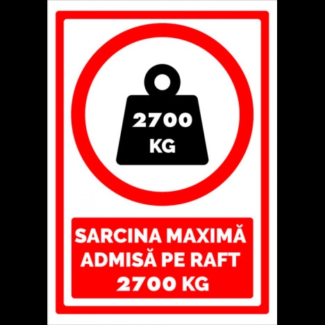 Vand Indicator pentru sarcina maxima admisa pe raft 2700 kg la un pret foarte avantajos! Indicator pentru sarcina maxima admisa pe raft 2700 kg Va putem oferi alte dimensiuni, materiale sau modele separat la cerere. Noua modalitate de print UV pentru semne si indicatoare este de ultima tehnologie UV . Aceasta tehnica este mult mai performanta decat o tehnica obisnuita de printare digitala. Atat calitatea sa net superioara, cat si versarilitatea sa pe imprimarea diferitelor produse este foarte mare si larga Un print UV consta intr-o tehnica de printare prin care cerneala se aplica pe un material sau obiect de imprimat, care este apoi uscata instant de catre un emitator de raze ultraviolet. Pentru a acoperi toata suprafata printata sunt utilizate numeroase tipuri de compusi, incluzand carbonatul de calciu si caolinitul. Aceasta imprimare UV este o maniera de imprimare digitala cu o tehnica noua care usuca cerneala. Se poate folosi pe o gama larga de materiale, astfel incat se poate imprima pe plastic, metal, hartie, carton, placi ceramice, sticla, lemn si multe altele. ? Autocolant industrial UV pentru semne si indicatoare ? Folie adeziva din PVC polimeric, utilizata in special la exterior, pentru decorarea suprafetelor drepte, etc; ? Grosimea este de 90 microni. ? Adezivul este pe baza de poliacrilat, permanent. ? pentru interior si exterior. ? Suprafata foliei este integral colorata, lucioasa (59 de culori) sau mata (56 culori). ? Placi forex industrial UV industrial pentru semne si indicatoare cu suprafata tare, lucioasa, bun izolator termic si fonic, rezistenta mare la agenti naturali si corozivi, flamabilitate redusa. ? Gama de culori disponibile in permanenta in stoc: rosu, albastru inchis, albastru deschis, negru, galben inchis, galben deschis, gri, verde. ? Placile din PVC compact industrial au suprafata dura si lucioasa. Se recomanda folosirea acestor placi atat pentru aplicatii indoor, cat si pentru aplicatii outdoor, datorita proprietatii materialului de a fi un bun izolator termic si fonic. Placile din PVC compact sunt vacuumabile si termoformabile. ? Grosimi disponibile in permanenta in stoc: 2mm; 3mm. ? Placi bond industrial uv pentru semne si indicatoare ? placi sandwich aluminiu cunoscute si sub denumirile comerciale de alucobond, alubond si dibond. ? Utilizate pentru placari fatade, placari interioare, placari exterioare. ? Este un material cu doua fete din aluminiu si un miez din polietilena ce inlocuieste cu succes tabla, lambriurile sau placajele plastice. ? Miezul este fixat prin aderenta pe fetele din tabla, pe toata suprafata. ? Tabla este vopsita in minim doua straturi, peste care se aplica un strat de lac protector compatibil cu vopseaua. ? Panourile pot avea o singura fata decor sau ambele fete colorate ? ? Placile sunt foarte usor de prelucrat, putand fi personalizate prin laminare, serigrafiere, tipar digital si lacuire, fiind usor de intretinut si avand o durata sporita de viata.. www.prevenirea.ro - 0724 306 714. Va rugam sa selectati dimensiunea potrivita pentru dvs.