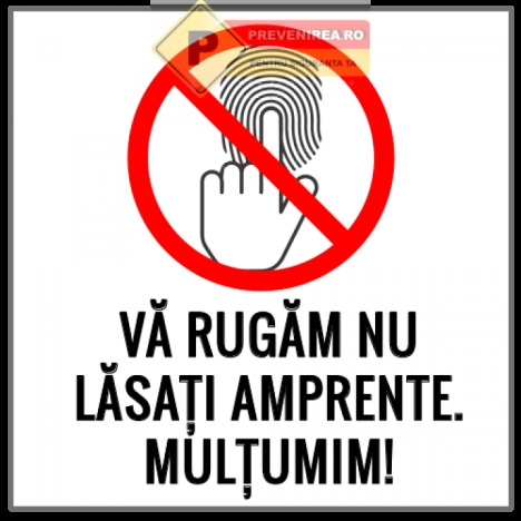 Vand Indicator va rugam nu lasati amprenta, la un pret foarte avantajos! Indicator va rugam nu lasati amprenta, Noua modalitate de print UV pentru semne si indicatoare este de ultima tehnologie UV . Aceasta tehnica este mult mai performanta decat o tehnica obisnuita de printare digitala. Atat calitatea sa net superioara, cat si versarilitatea sa pe imprimarea diferitelor produse este foarte mare si larga Un print UV consta intr-o tehnica de printare prin care cerneala se aplica pe un material sau obiect de imprimat, care este apoi uscata instant de catre un emitator de raze ultraviolet. Pentru a acoperi toata suprafata printata sunt utilizate numeroase tipuri de compusi, incluzand carbonatul de calciu si caolinitul. Aceasta imprimare UV este o maniera de imprimare digitala cu o tehnica noua care usuca cerneala. Se poate folosi pe o gama larga de materiale, astfel incat se poate imprima pe plastic, metal, hartie, carton, placi ceramice, sticla, lemn si multe altele. ? Autocolant industrial UV pentru semne si indicatoare ? Folie adeziva din PVC polimeric, utilizata in special la exterior, pentru decorarea suprafetelor drepte, etc; ? Grosimea este de 90 microni. ? Adezivul este pe baza de poliacrilat, permanent. ? pentru interior si exterior. ? Suprafata foliei este integral colorata, lucioasa (59 de culori) sau mata (56 culori). ? Placi forex industrial UV industrial pentru semne si indicatoare cu suprafata tare, lucioasa, bun izolator termic si fonic, rezistenta mare la agenti naturali si corozivi, flamabilitate redusa. ? Gama de culori disponibile in permanenta in stoc: rosu, albastru inchis, albastru deschis, negru, galben inchis, galben deschis, gri, verde. ? Placile din PVC compact industrial au suprafata dura si lucioasa. Se recomanda folosirea acestor placi atat pentru aplicatii indoor, cat si pentru aplicatii outdoor, datorita proprietatii materialului de a fi un bun izolator termic si fonic. Placile din PVC compact sunt vacuumabile si termoformabile. ? Grosimi disponibile in permanenta in stoc: 2mm; 3mm. ? Placi bond industrial uv pentru semne si indicatoare ? placi sandwich aluminiu cunoscute si sub denumirile comerciale de alucobond, alubond si dibond. ? Utilizate pentru placari fatade, placari interioare, placari exterioare. ? Este un material cu doua fete din aluminiu si un miez din polietilena ce inlocuieste cu succes tabla, lambriurile sau placajele plastice. ? Miezul este fixat prin aderenta pe fetele din tabla, pe toata suprafata. ? Tabla este vopsita in minim doua straturi, peste care se aplica un strat de lac protector compatibil cu vopseaua. ? Panourile pot avea o singura fata decor sau ambele fete colorate ? ? Placile sunt foarte usor de prelucrat, putand fi personalizate prin laminare, serigrafiere, tipar digital si lacuire, fiind usor de intretinut si avand o durata sporita de viata.. www.prevenirea.ro - 0724 306 714. Va rugam sa selectati dimensiunea potrivita pentru dvs. Va putem oferi dimensiuni, culori sau modele la cerere.Indicator va rugam nu lasati amprenta,