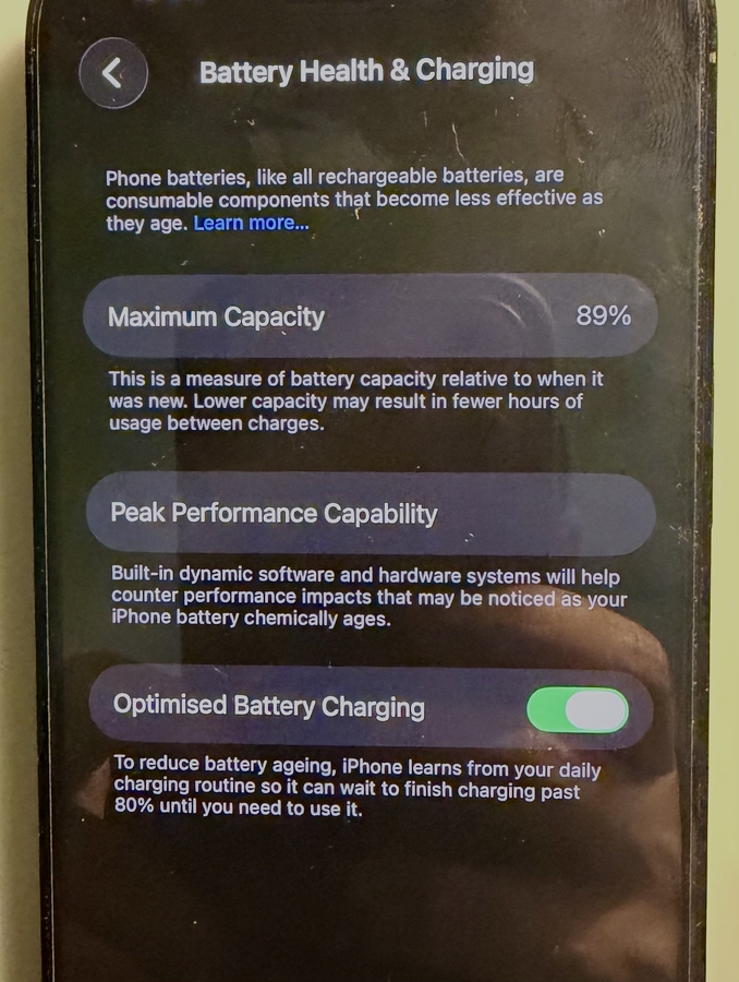 Sanatate baterie 89%.