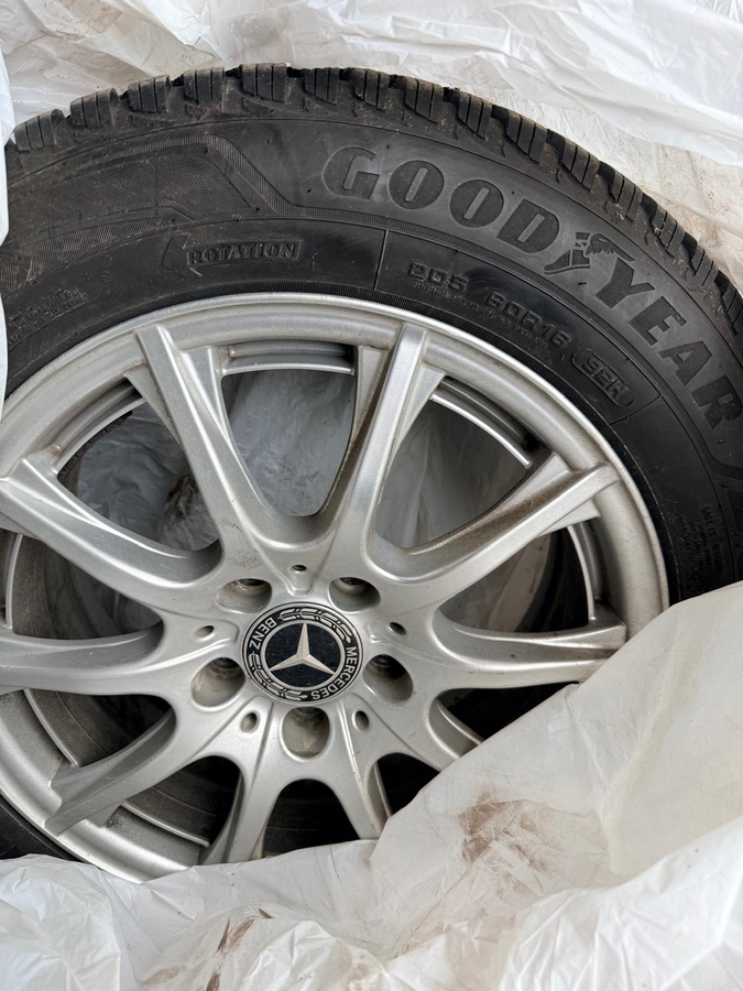 Vand set jante originale Mercedes-Benz din aliaj + anvelope de iarna Goodyear 205/60 R16 96H.