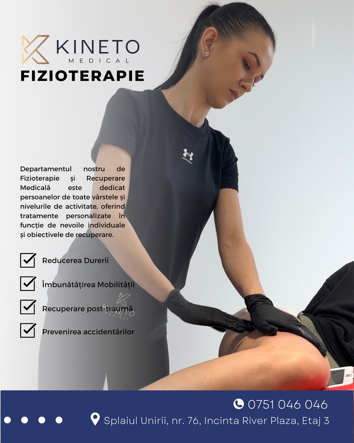 Centrul Kineto Medical este locul unde gasiti solutii personalizate pentru fiecare nevoie medicala. Ne concentram pe imbunatatirea performantei, starii de sanatate si recuperarea rapida, oferind programe adaptate individual. Cu o echipa dedicata si o abordare integrata, suntem aici pentru a va ajuta sa atingeti obiectivele de sanatate si performanta