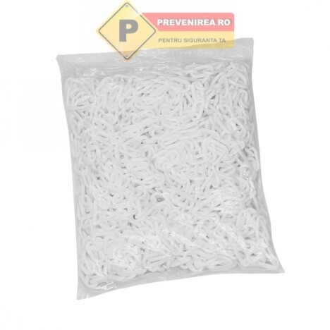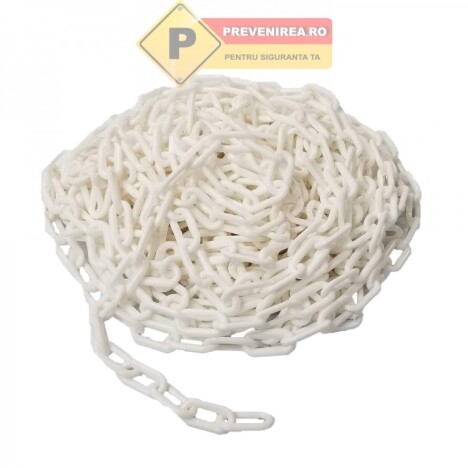 Vand Lanturi din plastic alb la un pret foarte avantajos! Lanturi din plastic alb Pret pe metru liniar Securizeaza, delimiteaza, protejeaza cu lanturile noastre de delimitare din plastic PREVENIREA Acest lant din plastic este conceput pentru a rezista la toate conditiile meteorologice. Fabricat de EUROPA, lantul de delimitare din plastic al brandului PRREVENIREA va va seduce datorita rezistentei sale mecanice ridicate dar si prin latura sa economica ca solutie de semnalizare.Descoperiti o multitudine de alegeri de culori, lungimi si, de asemenea, diametre de verigi prin aceasta categorie.Aceste lanturi de semnalizare vor deveni rapid un accesoriu esential pentru blocarea, securizarea accesului la un santier sau o zona de risc, de exemplu. Fixat cu usurinta intre doua puncte, lantul de plastic poate fi instalat rapid. Acest lant de avertizare este usor si durabil deoarece este fabricat din plastic de inalta calitate. Este potrivit pentru utilizare in interior si exterior.Acest lant de plastic este solutia perfecta pentru a restrictiona accesul in anumite zone. Lantul de semnalizare din PVC este cea mai functionala solutie pentru toate problemele dvs. de planificare a spatiului. Combinand acest accesoriu cu unul dintre kiturile noastre de posturi de marcare, puteti incadra un perimetru, puteti limita accesul sau puteti crea o cale temporara.