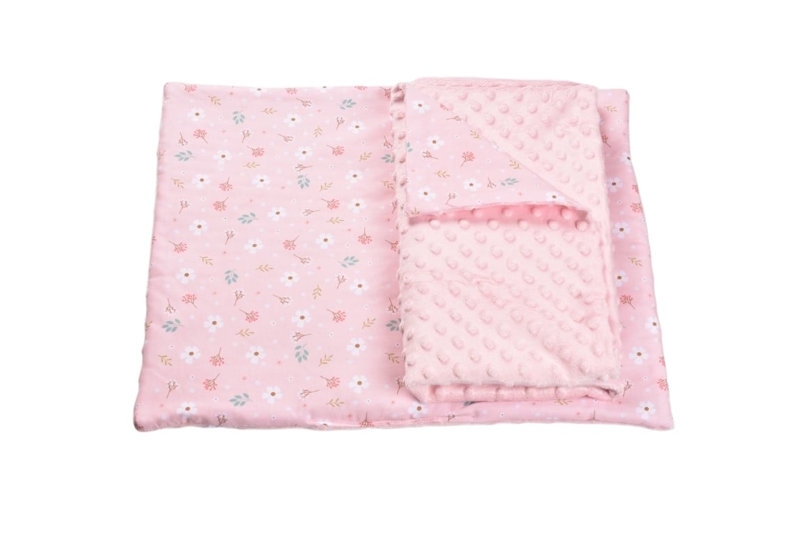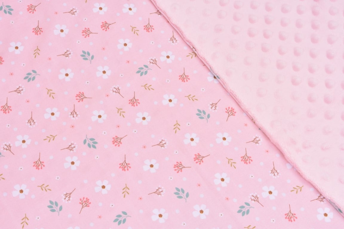 Paturica fermecata. Lenjeria model floricele este realizata din bumbac premium de inalta calitate, certificat OEKO TEX, perfect sigur pentru copilasi inca din prima zi. Am combinat setul cu minky pufos de culoare roz pal, culoarea gingasiei copiilor. Plusul folosit este gros si dens, ideal pentru a oferi caldura si stare de bine.
