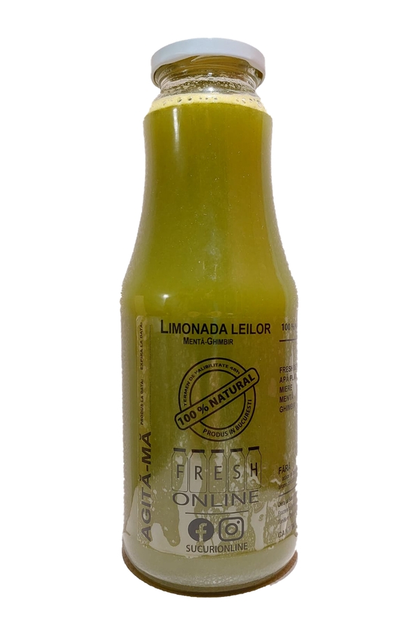 apa plata, miere naturala, menta proaspata, si ghimbir proaspat
