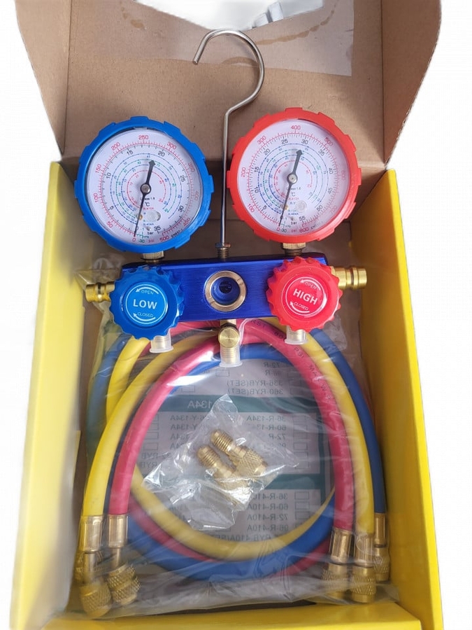 Manometrul este un instrument precis si fiabil, conceput pentru diagnosticarea si intretinerea sistemelor de climatizare si refrigerare. Acesta este compatibil cu freonii R134A, R404A, R32 si R410A, fiind ideal pentru utilizare profesionala sau personala.