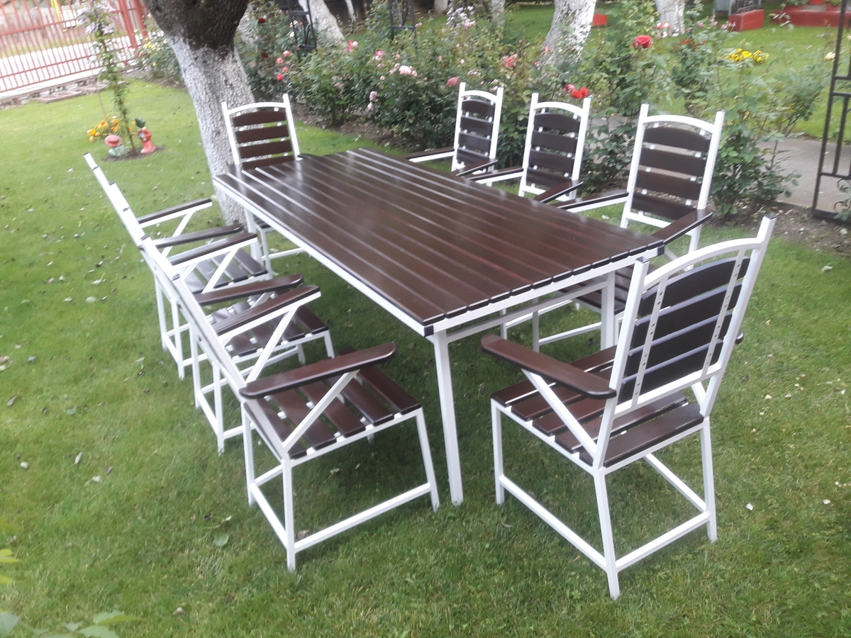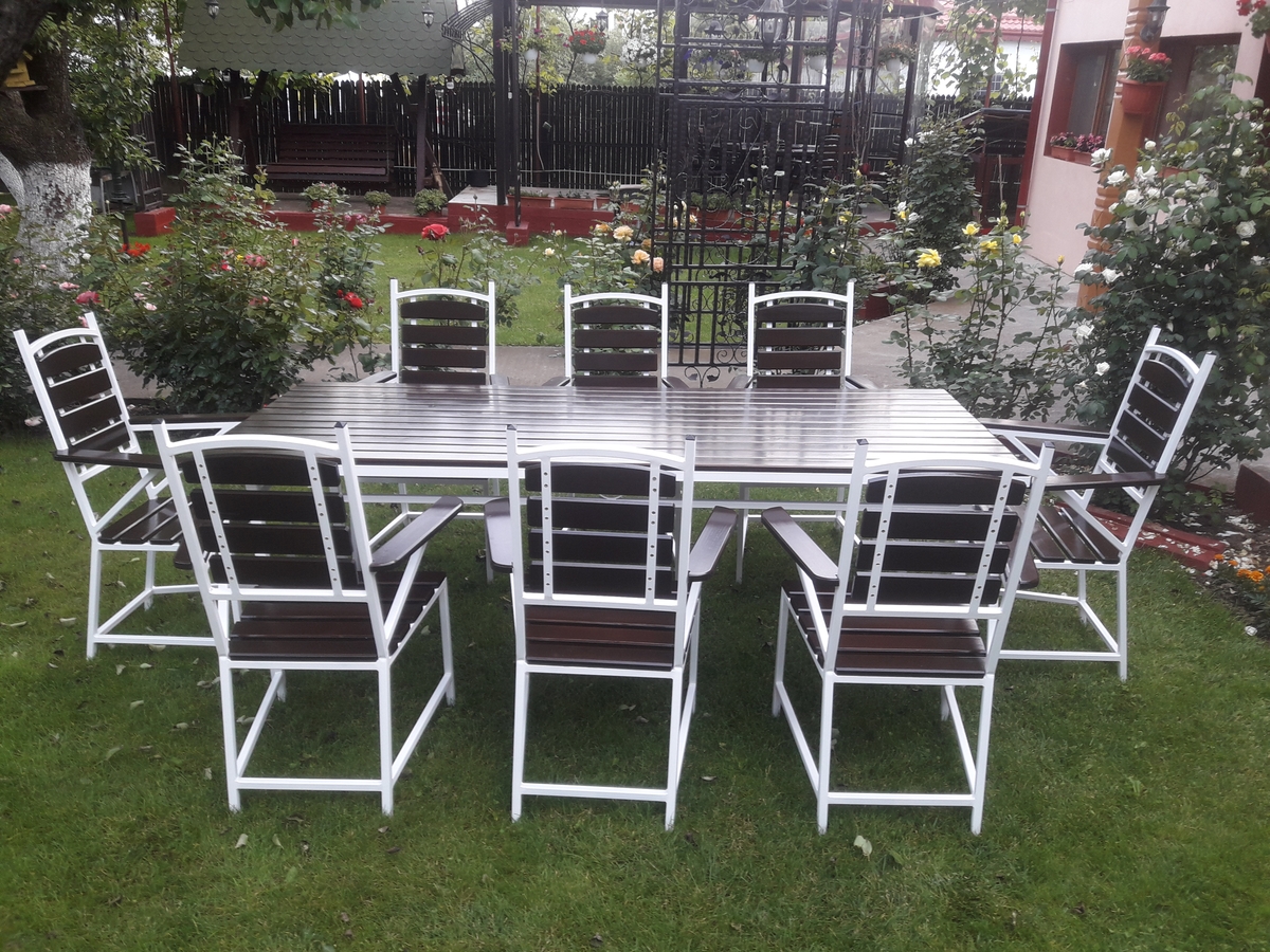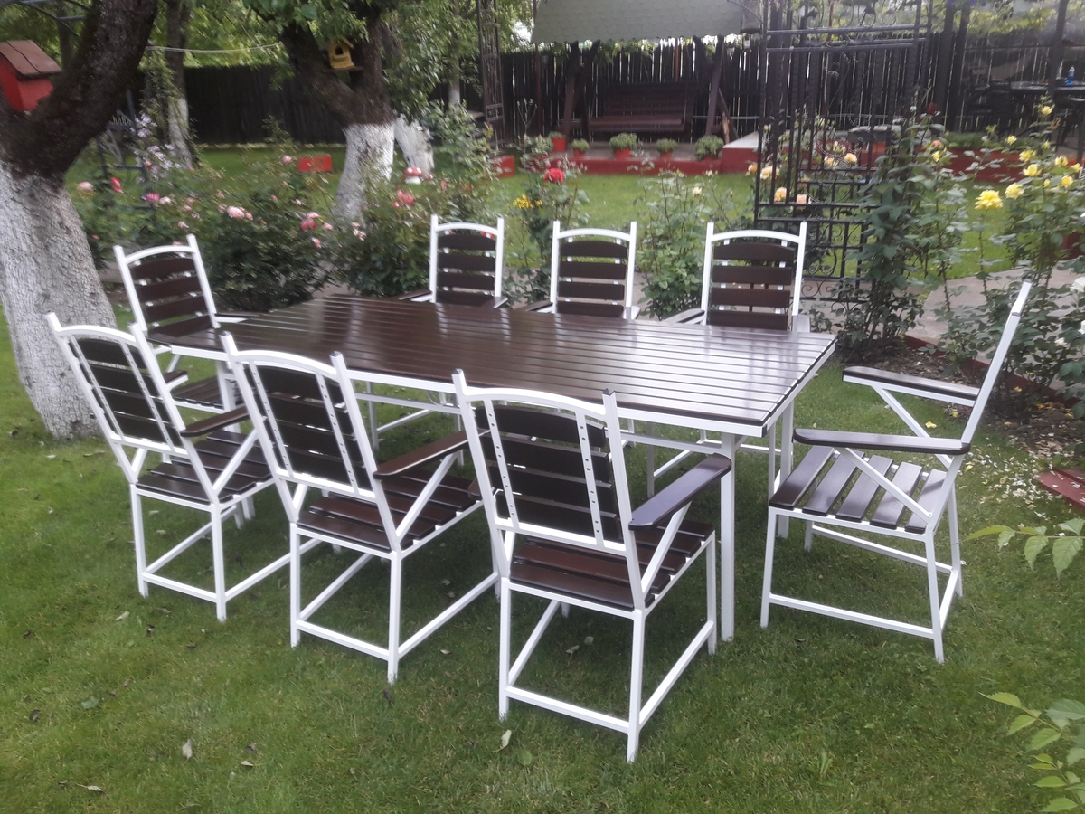 set masa 2.500 x 900 mm si 8 scaune cu cotiere