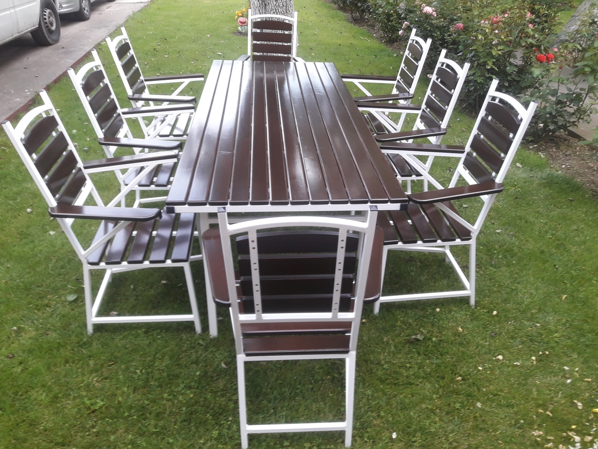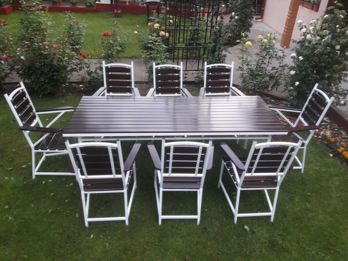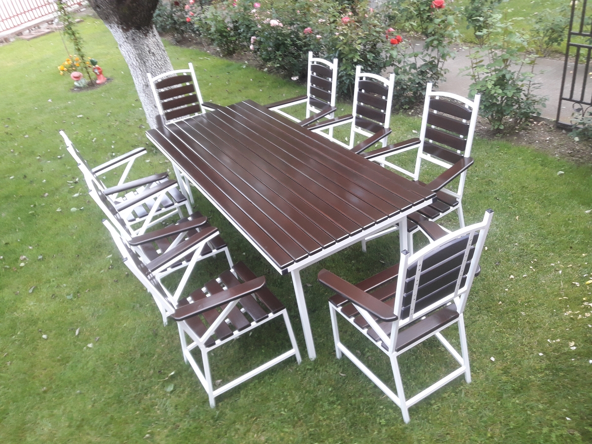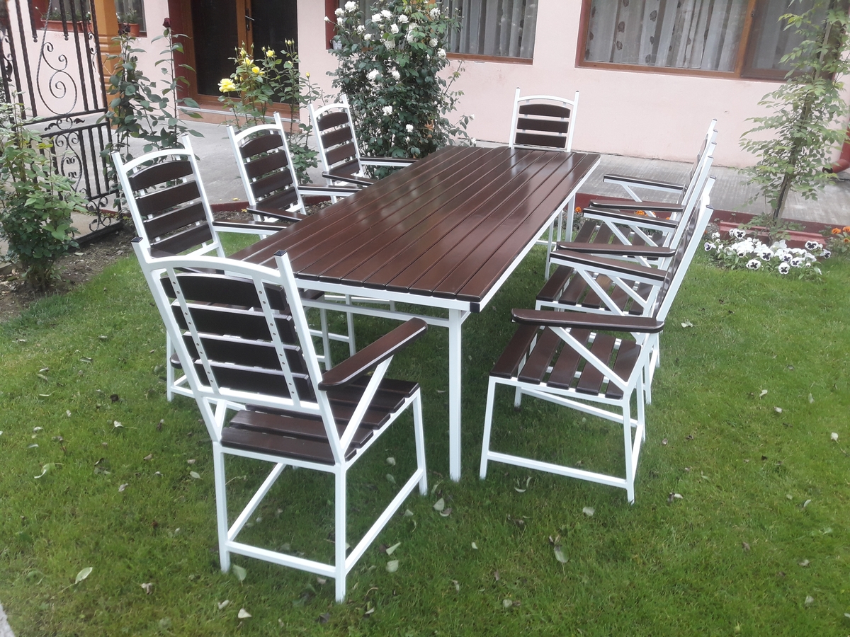set masa 2.500 x 900 mm si 8 scaune cu cotiere