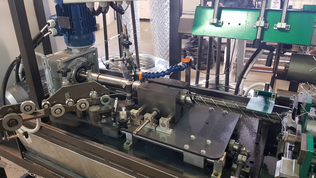 Fabricam la comanda masina automata de facut plasa impletita. Masini noi! Este dotata cu 5 motoare electrice 2,2kW,1 pentru tesut; 1 pentru taiere; 2 motor pentru pliere; 1 motor pt. bobinaj, cererea de energie este 8 Amper (Productivitate: La inaltimea de 1,5 inaltime, produce 600 metri liniar in 8 ore. Se pot stabili parametrii constructivi ai plasei impletite: numar de ochiuri, latimea si lungimea plasei. Se poate lucra cu ochiul 20;30 ; 40, 55; 65; 70, 80 mm. Cu sarma zincata de 1,6-2,5 mm de gros, este posibil sa lucreze si cu sarma pana la 4,0 mm. Si cu sarma de PVC cu sarma neagra! Este foarte