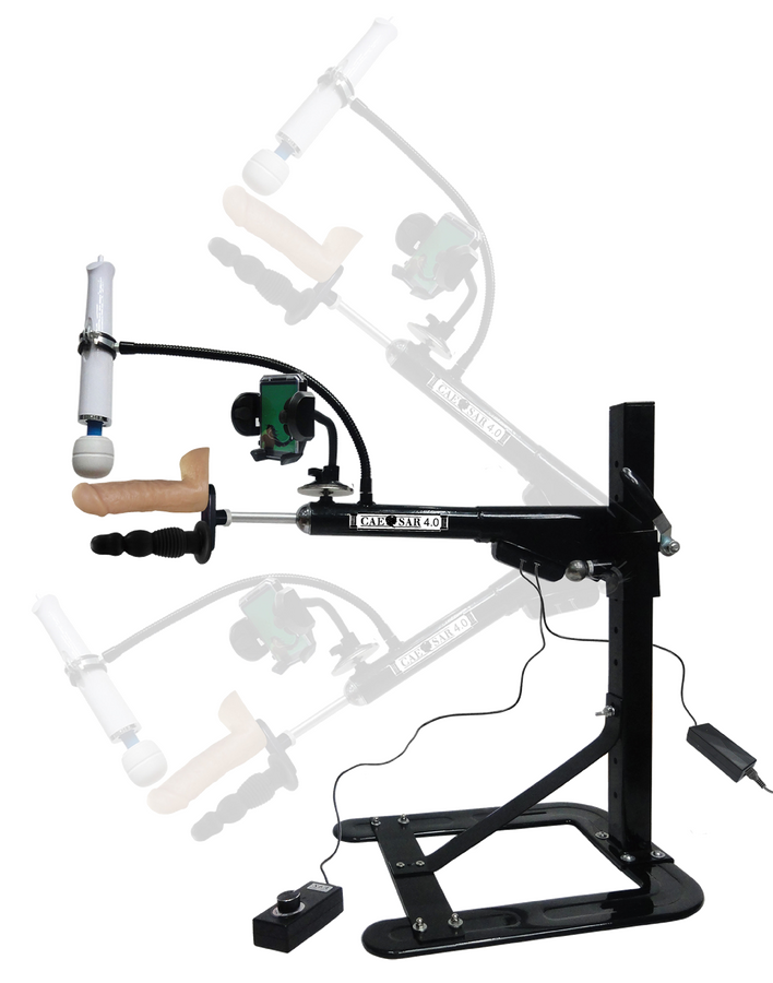 Bratul de impingere poate fi reglat in inaltime si ajustat pana la aproape 180 grade, astfel incat poate fi folosit in orice pozitie. Vine echipata cu un dildo realist pentru stimulare vaginala si clitoridiana, precum si cu un dildo anal. Accesoriile pot fi montate pe un suport pentru penetrare dubla. In plus, detine si un suport pentru telefon pentru filmarea si vizionarea actiunii ( telefonul nu este inclus!).