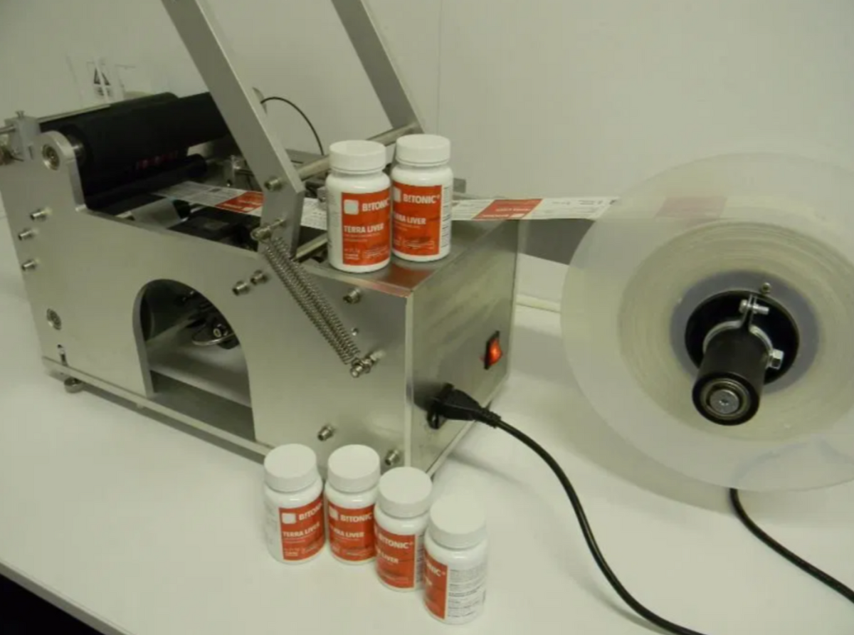 Masina etichetare recipiente cilindrice - semiautomata - 220V, 50Hz, 0.12Kw putere instalata METRC - 50.0