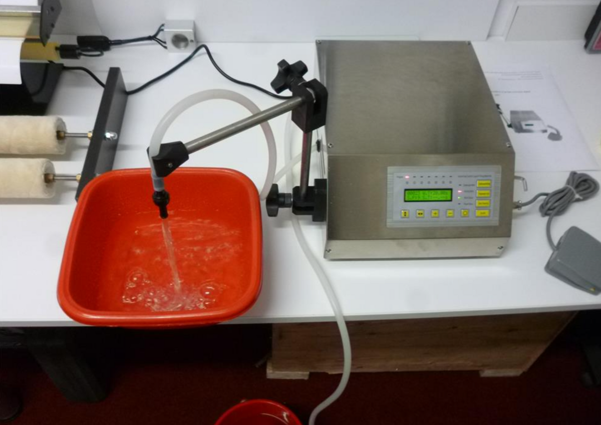 Masina imbuteliere suc necarbonatat - fara pulpa de fructe. Capacitate umplere maxim 180 litri/ ora. Pompa se autoamorseaza. Dozarea se face automat prin reglarea timpilor de umplere.