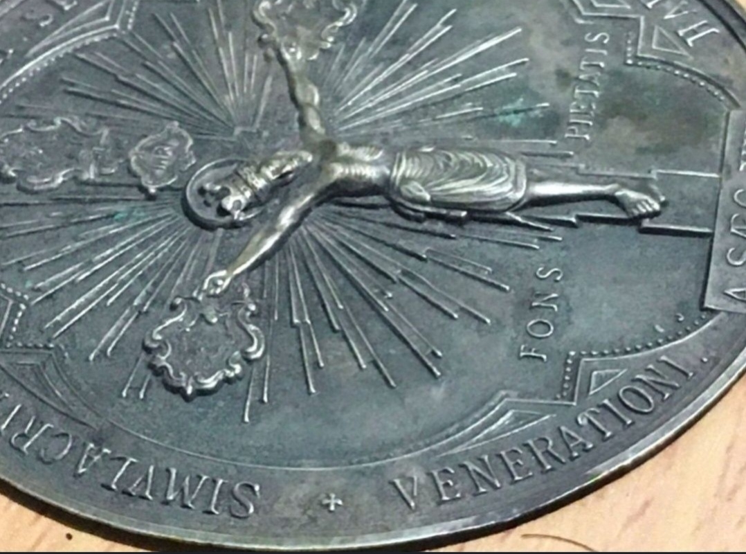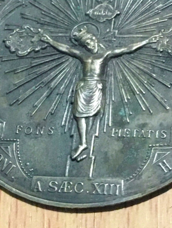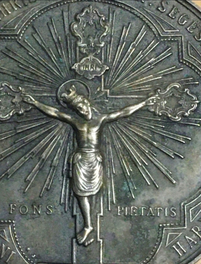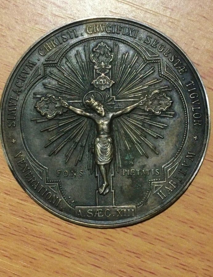 Prezinta scriere in latina, imaginea lui Isus Hristos rastignit si Izvorul Pietatii.