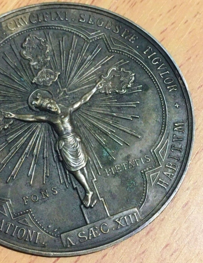 Medieval crucifix catolic, realizat undeva intre anii 1700-1800.