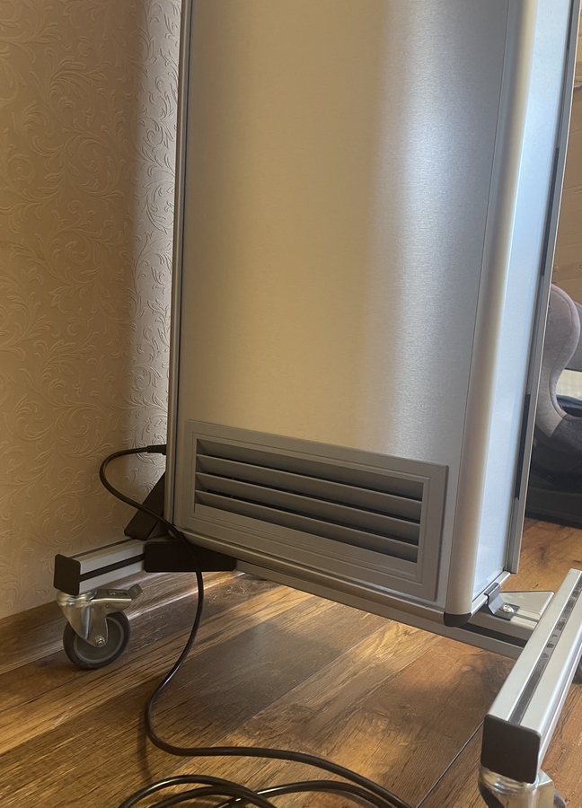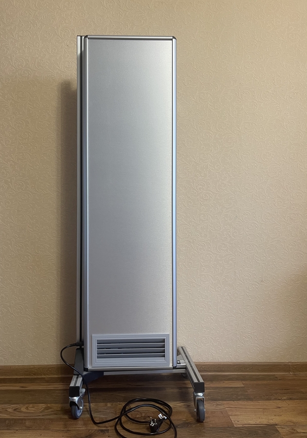 • Aerul incarcat cu microorganisme este antrenat in aparat de sistemul de circulatie a aerului. In interiorul carcasei sunt amplasate generatoarele de UV-C, a caror radiatie este concentrata printr-un sistem de oglinzi elipsoidale ce formeaza o cavitate rezonanta, ceea ce duce la un randament maxim al dispozitivului.