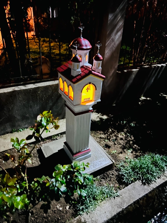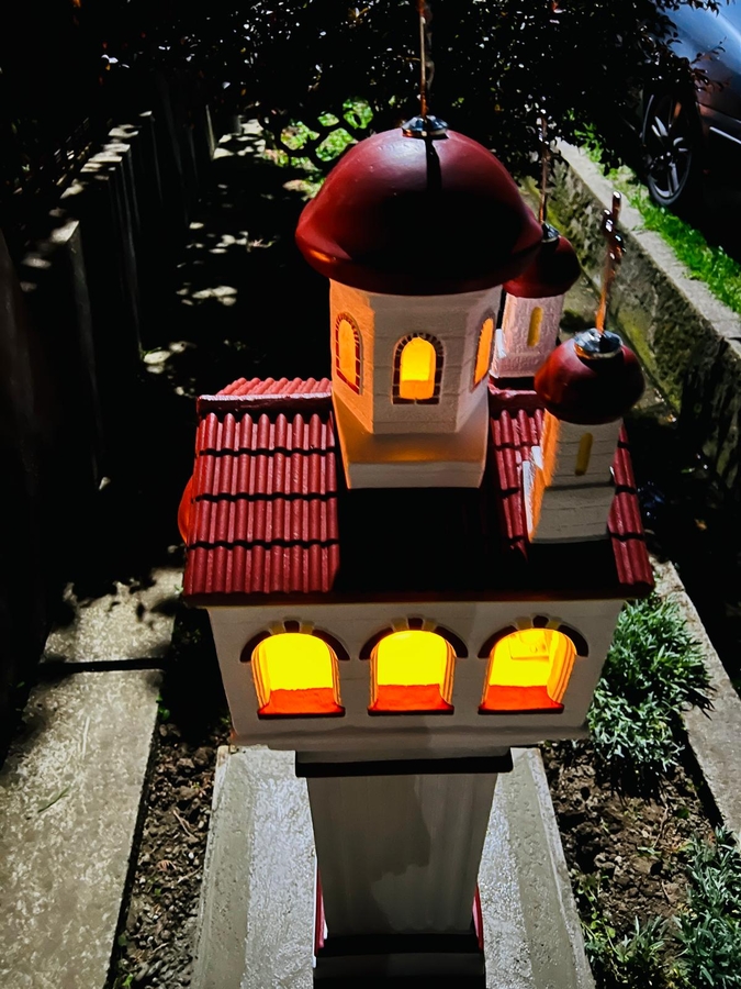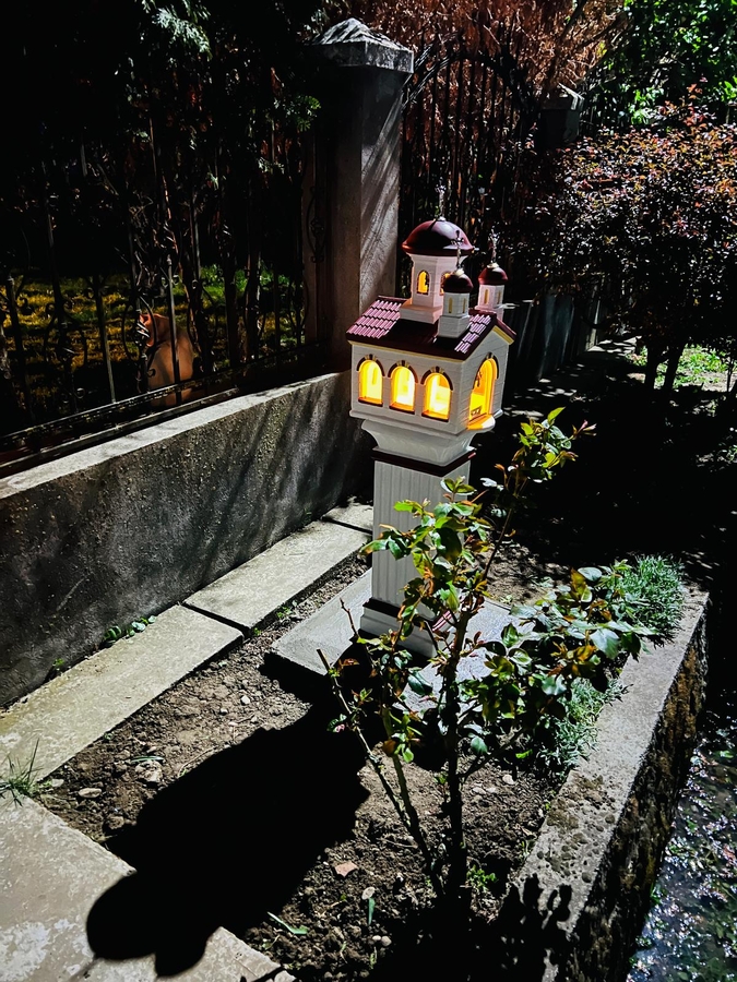 Bisericuta din beton vopsita cu o vopsea de calitate rezistenta la intemperii( pt pardoseli).