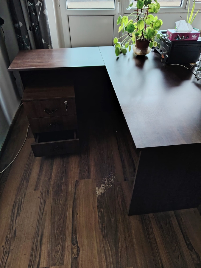 2 seturi de mobila birou compus din 2 dulapuri, 2 birouri in L si 2 dulapioare pe role cu sertare