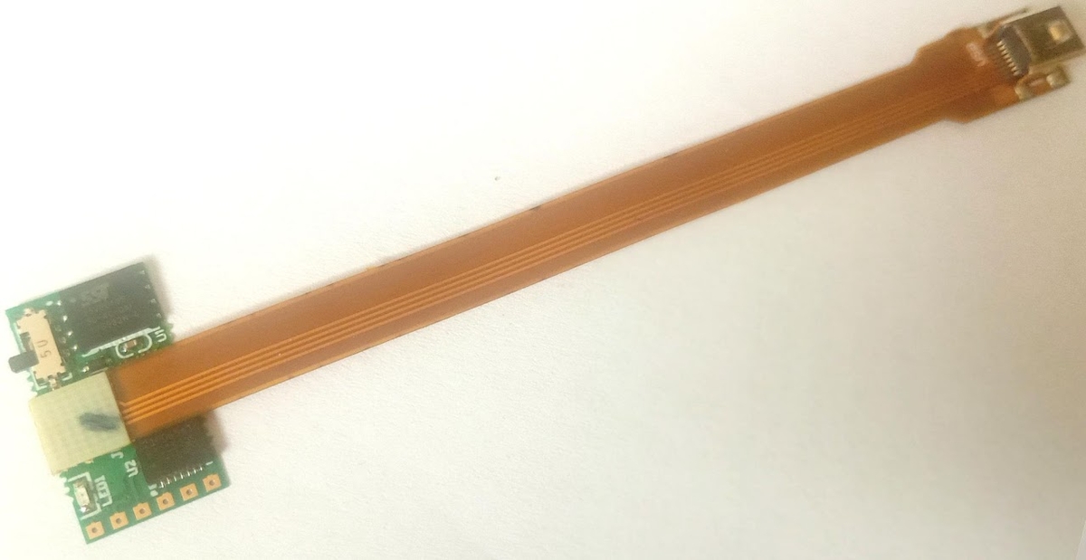 Mufa de conectare, unde se va conecta cablul USB la computer, este realizata cu un cablu cu clema plata.