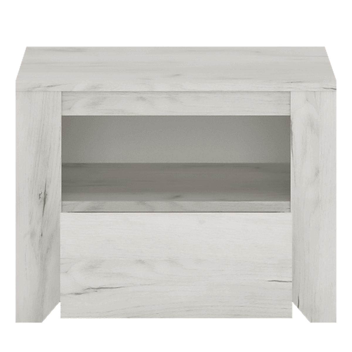 Noptiera din PAL melaminat alb cu vinisoare gri.