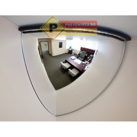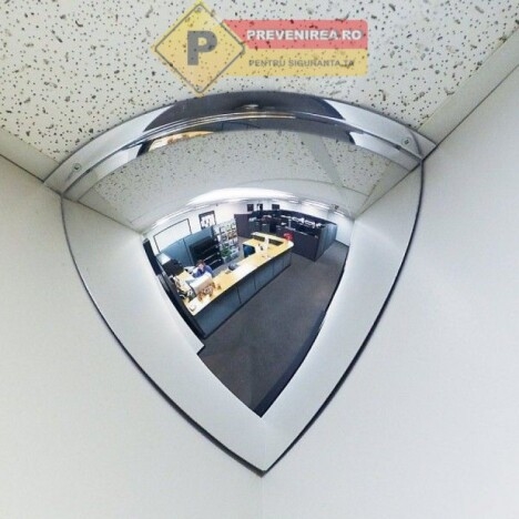 Vand Oglinzi de supraveghere birou la un pret foarte avantajos! Oglinzi de supraveghere birou Oglinda 90° pentru magazin - (H) - 90cm Datorita formei sale care permite aplicarea in colturile incaperilor (spatiilor comerciale, magazinelor) oglinda este special conceputa pentru observarea si demascarea hotilor din magazine. Materialul Este produsa din material acril (cu 70% mai rezistent decat sticla). Este foarte usoara si are durata indelungata de exploatare. Fixarea Fixarea se face prin suruburi direct pe colt. Oglinzile de siguranta convexe sunt un dispozitiv de siguranta utilizat pe scara larga in Romania , pentru a creste vizibilitatea obstacolelor in locatii periculoase. Aceste dispozitive sunt concepute pentru a oferi un camp vizual mai larg pentru a reduce punctele moarte si pentru a indica privitorului prezenta sau absenta unui vehicul si/sau pieton in miscare sau stationar. Forma convexa a oglinzii are ca rezultat distorsiunea imaginii, viteza si distanta unui obiect. O oglinda de siguranta convexa este proiectata pentru a oferi niveluri scazute de distorsiune, facand-o potrivita pentru utilizare pe drumuri si in zone in care distorsiunea imaginii poate fi periculoasa (de exemplu, drumuri, parcari, depozite). Oglinzile de siguranta convexe pot fi montate pe perete sau pe stalp, in functie de inaltimea necesara si de gama de suport disponibil. De exemplu, un suport de montare pe stalp va fi necesar la un colt de strada, iar un suport de montare pe perete va fi necesar intr-un centru comercial. Este important atunci cand instalati o oglinda convexa, sa va asigurati ca pozitionarea si dimensiunea oglinzii de siguranta sunt adecvate pentru locatia sa. Gama noastra de oglinzi pentru trafic include oglinzi de siguranta pentru iesirea de pe alee si oglinzi sport oarbe. Aceste oglinzi sunt concepute pentru a preveni accidentele, ranile si pentru a descuraja furturile. Pot fi utilizate in depozite, fabrici, situatii de coliziune cu risc ridicat, pentru supravegherea stocurilor, siguranta statiilor de lucru si observarea directa a partilor ascunse ale utilajelor de la distanta sigura.