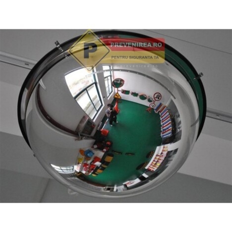 Vand Oglinzi pentru magazine la un pret foarte avantajos! Oglinzi pentru magazine Oglinda de supraveghere 360° (H) - 80cm Este o oglinda semisferica. Se poate utiliza cu succes atat in spatiile industriale cat si in centre comerciale si magazine. In zonele industriale asigura o buna supraveghere iar in zonele comerciale prezenta acestora descurajeaza hotii. Este o investitie realizata pentru eficientizarea si cresterea sigurantei la locul de munca. Materialul Oglinda este produsa din material acril (cu 70% mai rezistent decat sticla) . Este foarte usoara si are durata indelungata de exploatare. Fixarea Fixarea se face prin suruburi direct pe tavan. Oglinda cu cupola completa ajuta o persoana sa vada in jurul obstacolelor pentru siguranta sau sa monitorizeze o zona larga pentru o supraveghere eficienta Atarna de tavan si reflecta o imagine in unghi de 360 ??de grade pentru o vedere de sus a intersectiilor oarbe Acrilul este rezistent la spargere, cantareste mai putin decat sticla si reflecta o imagine clara si stralucitoare Vine cu hardware-ul necesar pentru a agata oglinda de un singur cablu suspendat de tavan