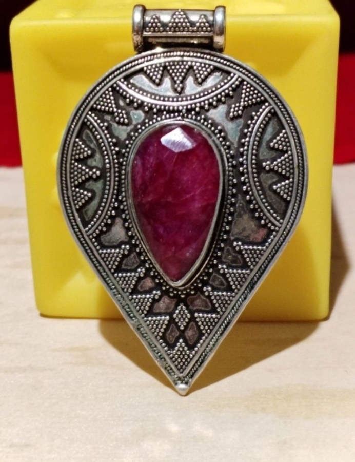 Pandantiv mare suedez din argint cu rubin