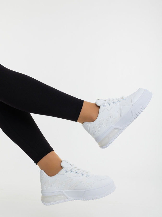 Pantofi sport dama albi din piele ecologica si material textil Sindria