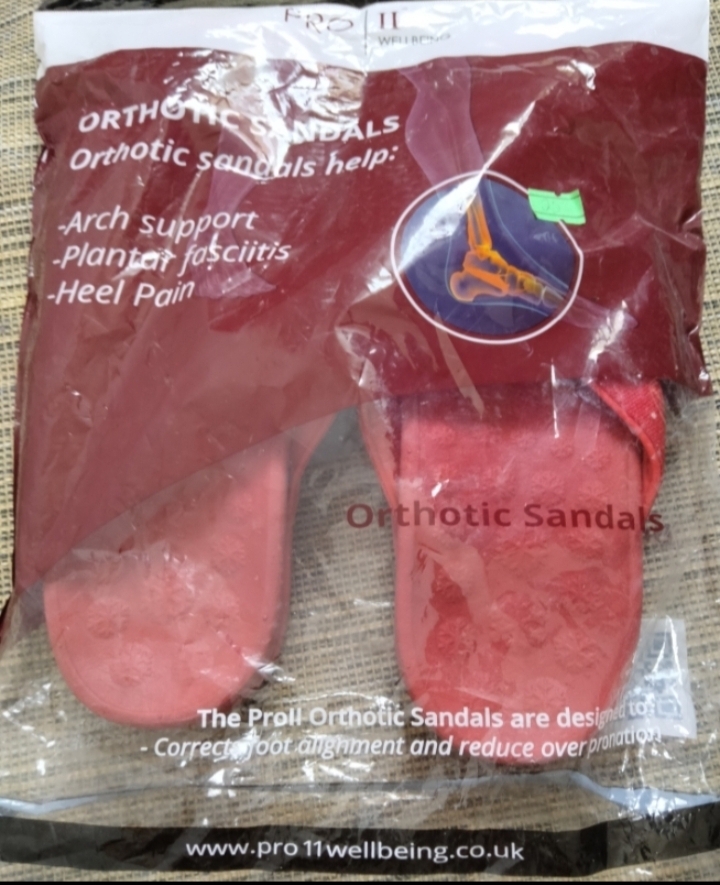 ​Vand o pereche de papuci/slapi ortopedici noi, marca Pro11 Wellbeing, conceputi pentru a oferi suport excelent si a ameliora durerile de picioare.