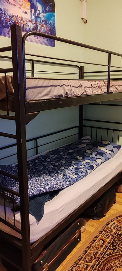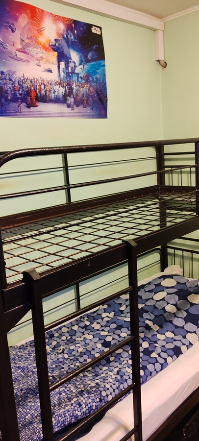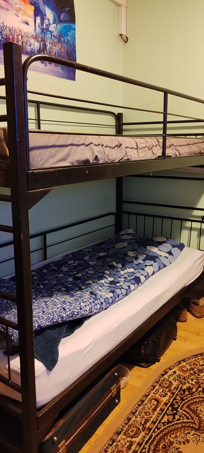 Acest pat supraetajat din fier este o solutie practica si eleganta pentru spatiile mici. Structura robusta si designul modern il fac o alegere excelenta pentru dormitoare sau spatii de cazare. Patul este in stare buna de utilizare si poate fi o achizitie avantajoasa pentru cei in cautarea unei solutii de dormit eficiente. Dimensiune salte 90 200, dimensiuni cadru metalic 95x210