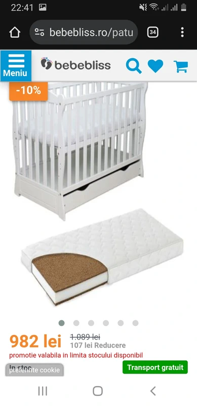 Patut+saltea cocos, stare impecabila. Folosit foarte putin. Ofer si lenjerii si protectii cu roz;